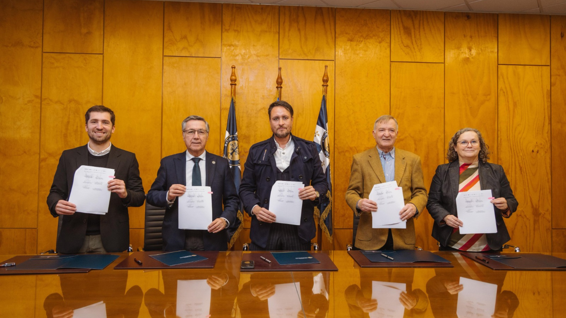 El alcalde Rodrigo Wainraihgt valoró la firma de este convenio que une a las universidades San Sebastián sede Patagonia, Austral de Chile, Santo Tomás y el instituto DUOC UC, además de la Universidad Federico Santa María de Valparaíso y un conjunto de empresas locales.