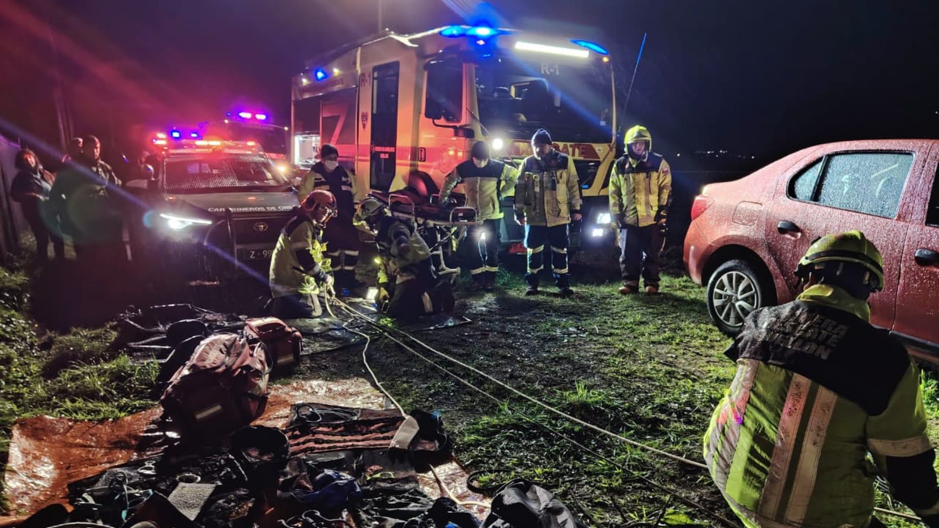 Un amplio despliegue de Bomberos, Carabineros y del Servicio de Atención Médica de Urgencia permitió salvar la vida de un hombre que durante la madrugada cayó a un barranco en la comuna de Quellón.